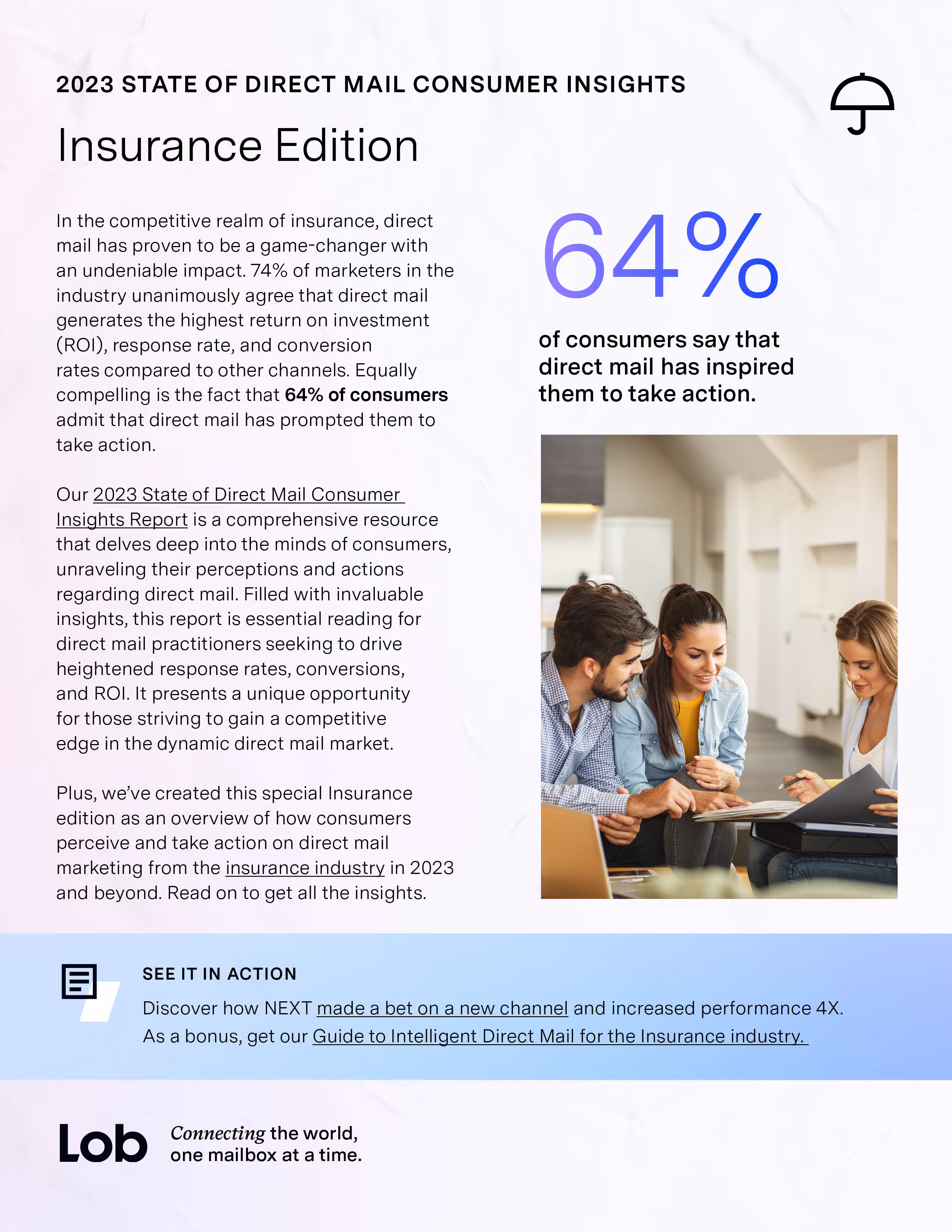 See how consumers engage with direct mail in this one-pager for insurance companies taken from our 2023 State of Direct Mail Consumer Insights report.