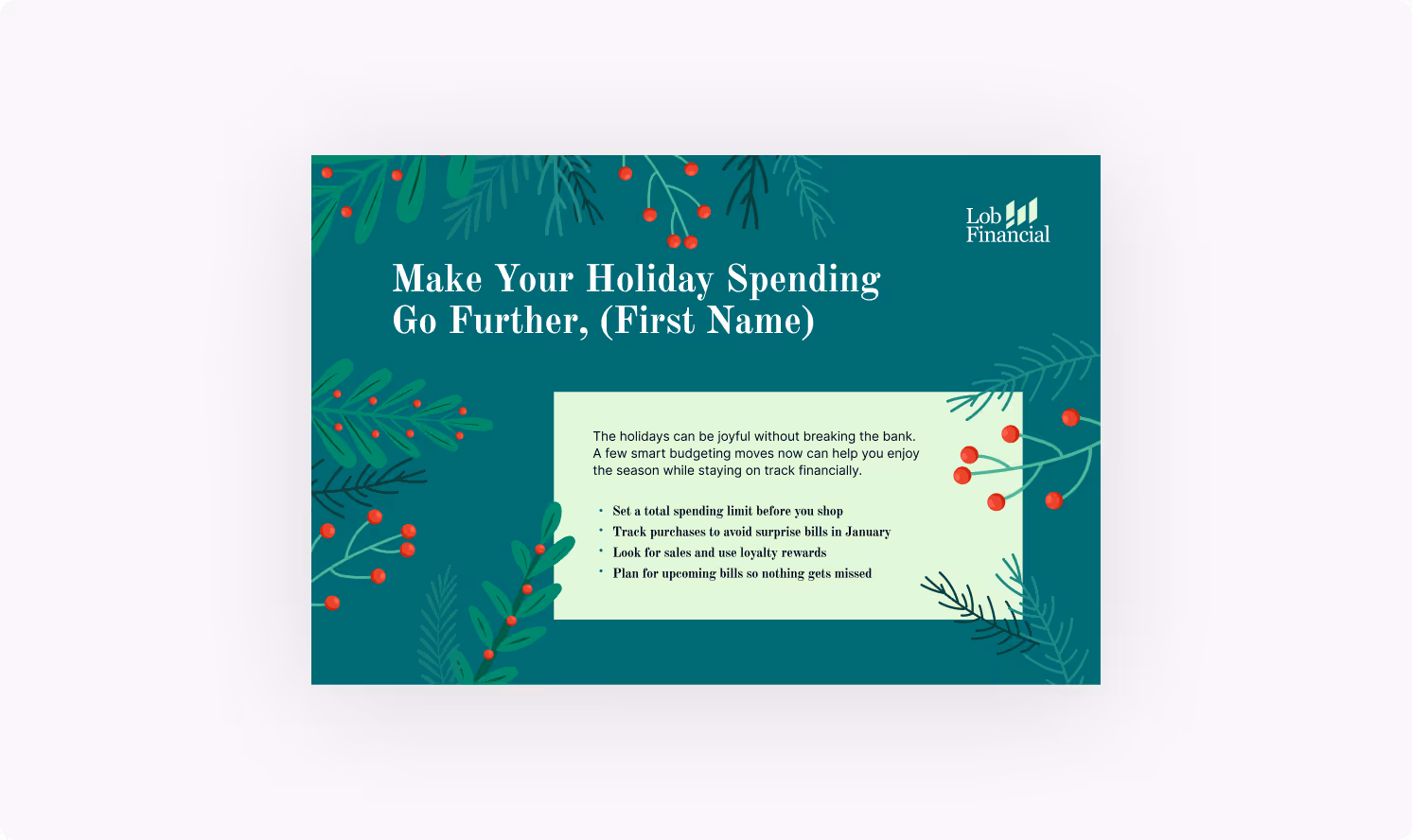 Holiday Budgeting Tips Letter