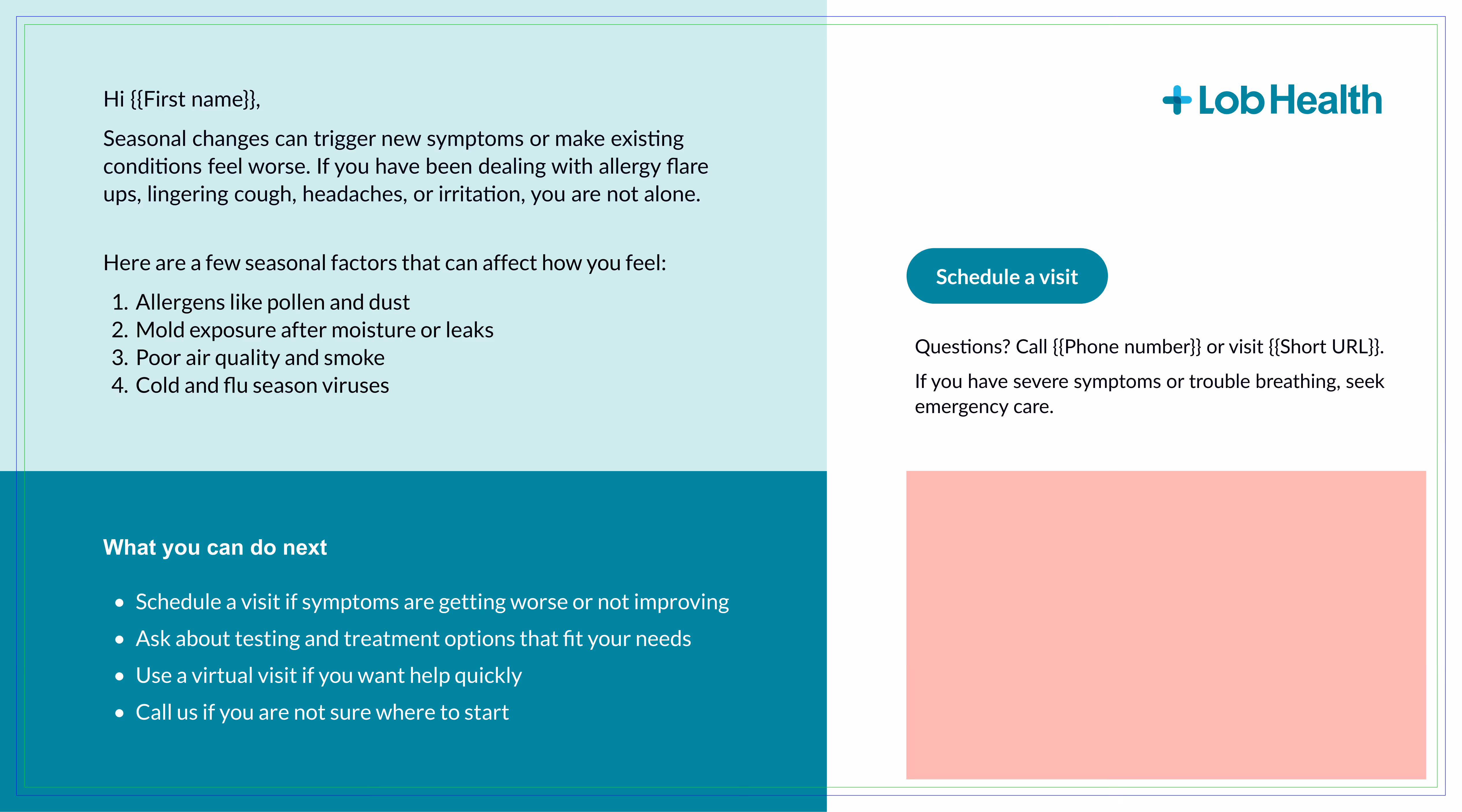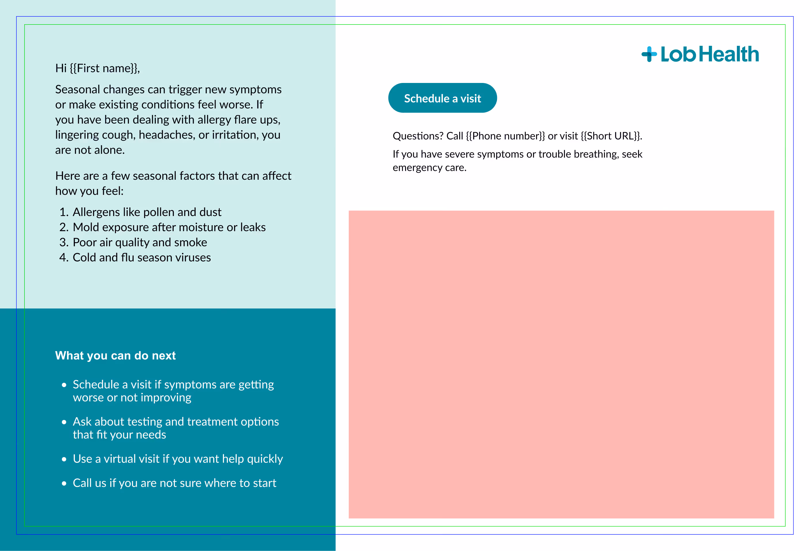 This template is designed to make sending personalized mail quick and easy. Open the file in Figma and duplicate it into your workspace to customize the design. Use the plugin to export your mail piece into your Lob account.