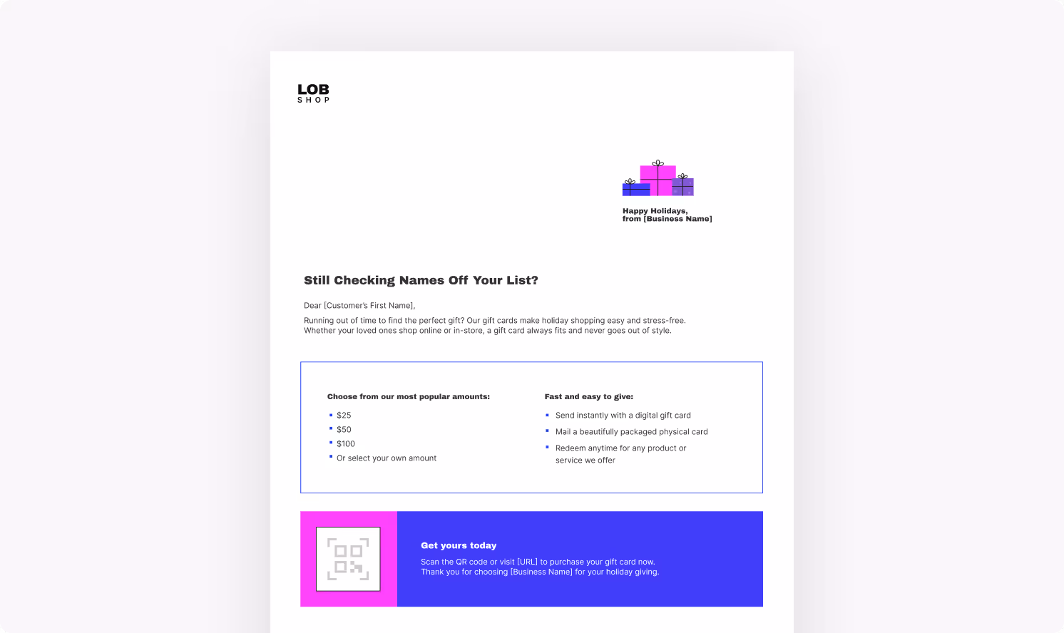 Use a pre-designed template or start from scratch and export directly into Lob